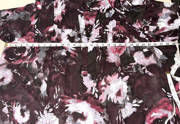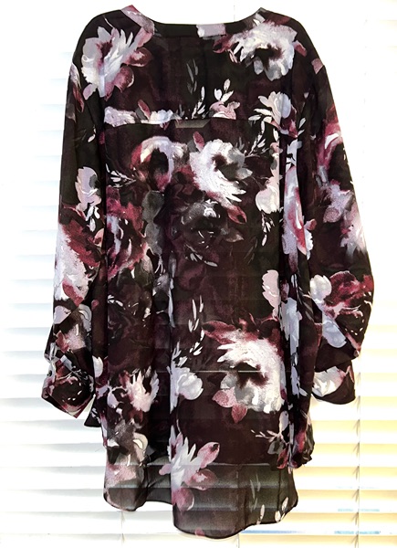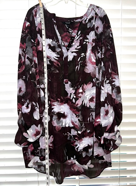 Simply Vera brand pintuck top, size 3X. Shirt is lightweight, sheer, with roll tab sleeves, hi-low hem, and official color is "stellar bouquet". 100% polyester. Excellent condition from smoke free home. $15
