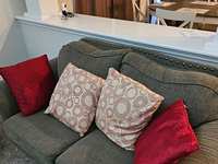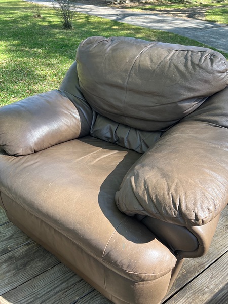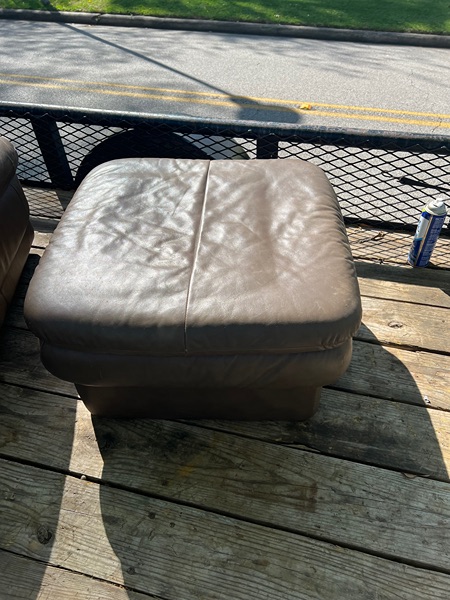 Chair is clean, no rips or tears. Ottoman is missing legs, one small tear under edge. Great for a Man Cave or Kids gaming needs. Cash or Zellle. Located in Oak Ridge North