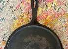 Unmarked, as far as I can tell. Measures 10” across without handle. Very heavy!…$50 FIRM