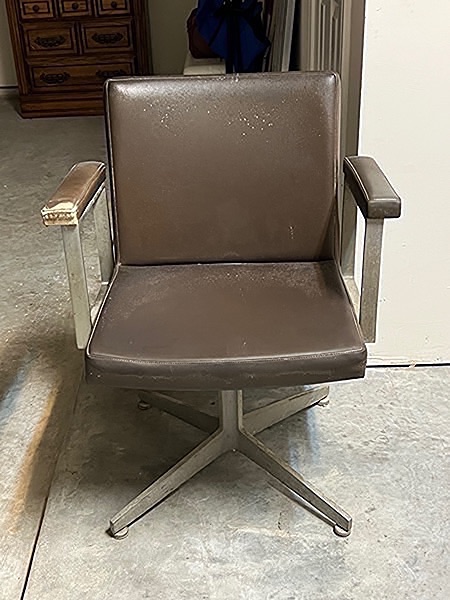 Mid-century Swivel Office Chair Vintage 1950’s! Metal frame with brown upholstery. Needs tlc but this classic is worth it!…$40 obo
