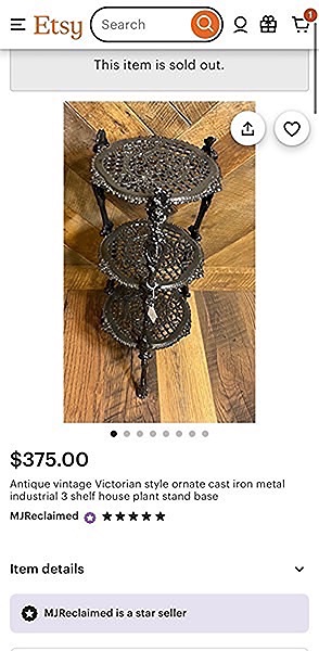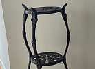 Victorian style design with intricate patterns on the circular shelves and elegant, curved legs. Versatile for both indoor and outdoor use, suitable for displaying potted plants, flowers, or other decorative items...$100 firm