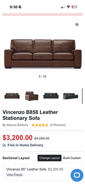 Top Grain Natuzzi Leather Sofa and Ottoman Photos