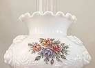 • Design: Features a "puffy rose" embossed pattern on both the glass shade and the lighted base, decorated with painted flowers. ®