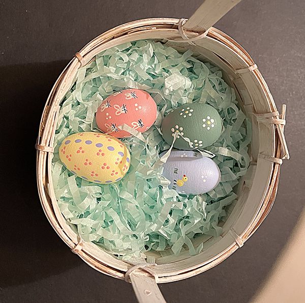 Easter Basket with Hand Painted Wooden Eggs Photos