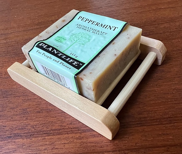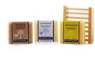 All natural, vegan plantlife soaps (1 Patchulli and 1 Peppermint) and includes two wooden soap holders that prevents soap from sitting in water and looks great on countertops or shower stalls! Pic. show similar items.