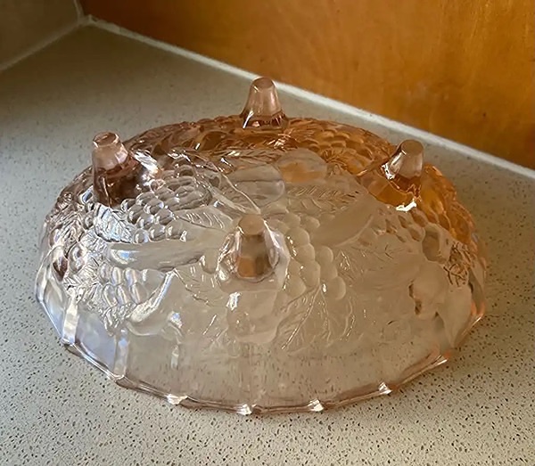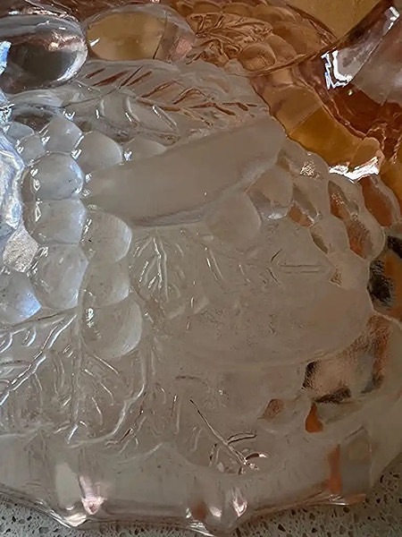 • It is a heavy, pressed glass piece often used as a centerpiece or serving bowl. Would also look great on bathroom countertops with rolled hand towels for guests…$30 firm