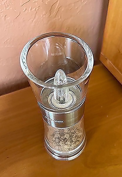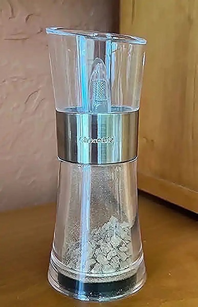 Clear acrylic tabletop chocolate grinder with stainless steel accents by Cole & Mason. Never used- came with cocoa.