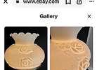 • Design: Features a "puffy rose" embossed pattern on both the glass shade and the lighted base, decorated with painted flowers. ®