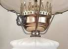 • Structure: Comprised of milk glass with brass or metal accents and a glass chimney. •