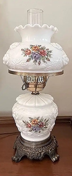 Vintage Fenton milk glass Victorian parlor table lamp