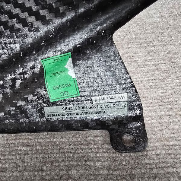 Carbon Fiber Tail Exhaust Heat Shield Fairing Cover Cowl 2006-2012 Daytona 675 R. This exhaust came off of a 2012 Triumph Daytona 675R. Located in The Woodlands 77381. Crossroad kuykendahl road and research forest drive.