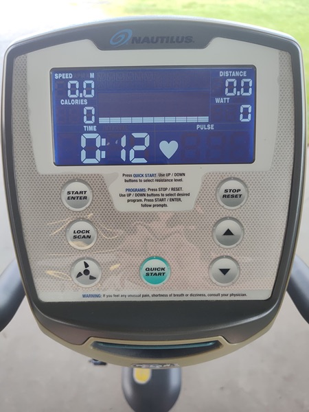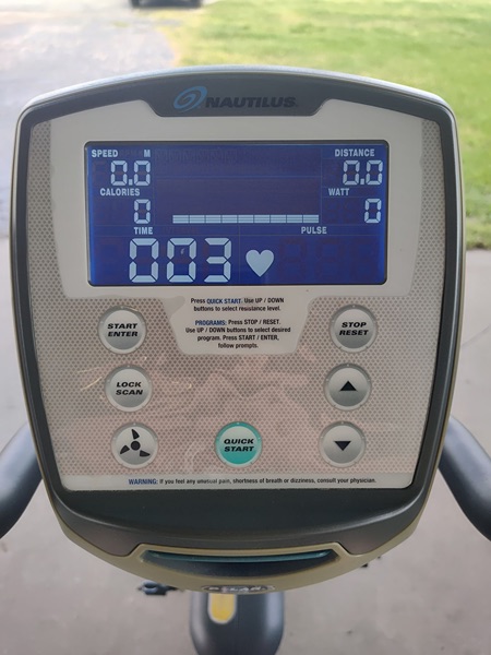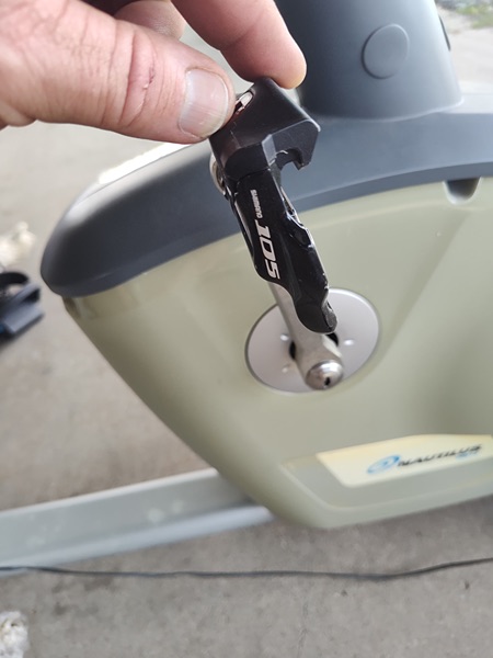 Nautilus RS14 exercise bike in good condition. Everything works. Comes with lock-in Shamano 105 foot pedals and original foot pedals. Bought after my knee surgery, did great for my rehab, no longer need.