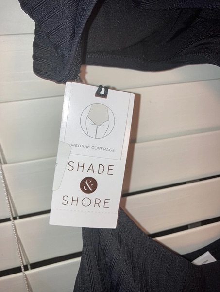 Brand is Shade & Shore, size small, medium, or large. Adjustable straps, removable cups, medium coverage, ribbed. New with tags from smoke free home. $10 each
