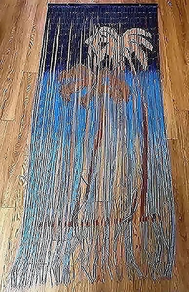 Fits normal size doorways (we used it on a closet so there was a bit of overhang on each side and that looked good too. Only missing a couple strands and has a few kinks from normal wear so discounted appropriately but still looks great!Palm tree - surf - beach - island theme -last pics for price comparisons