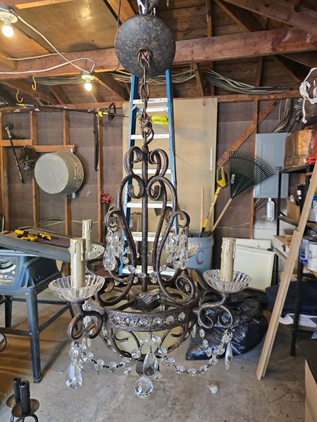 Two chandeliers for sale. Both are under 5 years old and work well. One is larger for a more open space, the second is more ornate and would go well in a powder room, primary bathroom, foyer or dining, etc.
