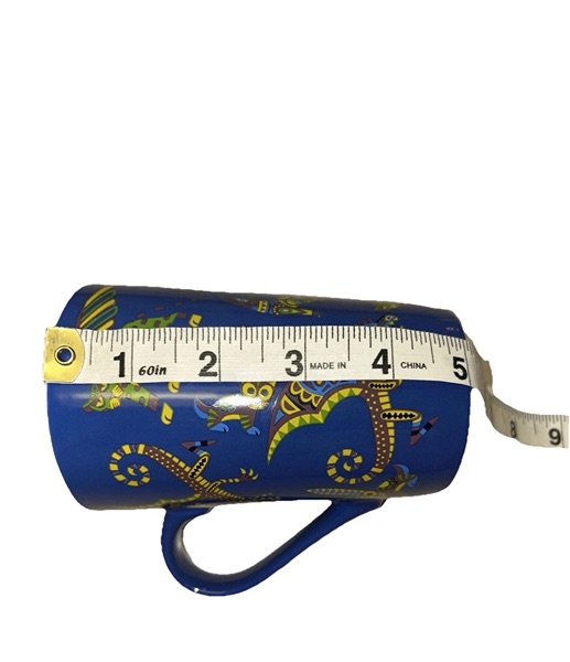 Blue ceramic souvenir mug featuring Mexican folk art from Folgado Mexico in Cancun. Never used, still has purchase stickers on the bottom. Smoke free home. $10
