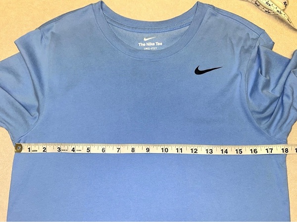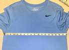 Men's small activewear Dri-fit tee in light blue with a dark Nike logo swoosh on left chest (may be black or dark blue-I can't distinguish between those colors). No major flaws, just light wear/pilling. Overall good condition from smoke free home. $5