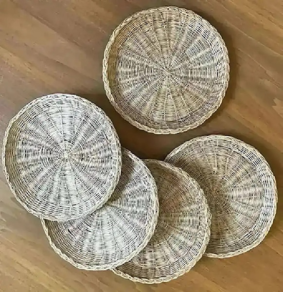 Five wicker paper plate holders, about 10” in diameter…$8 total, firm