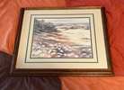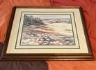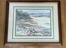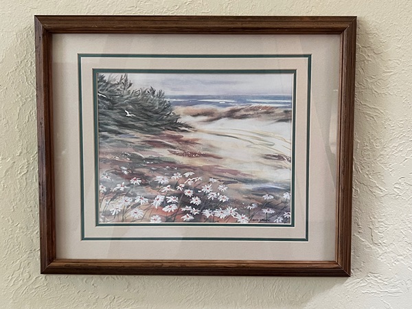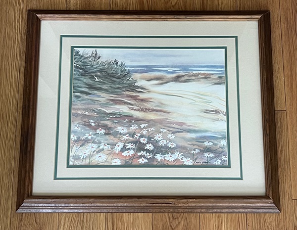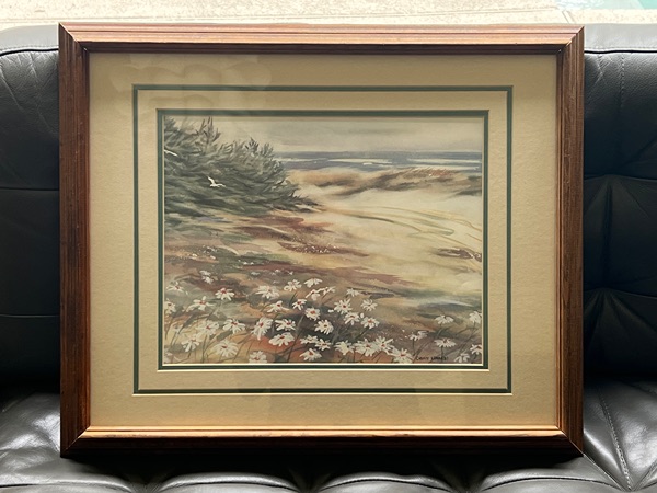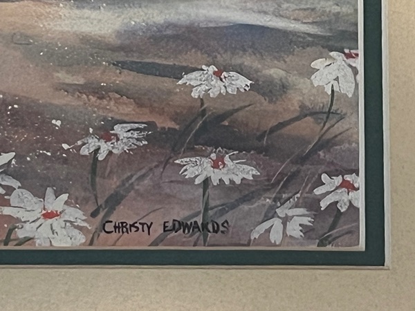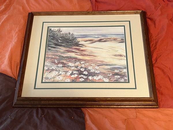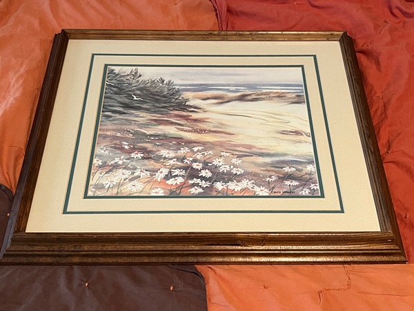 Vintage framed watercolor print "Daisy Path" by artist Christy Edwards...$30 firm