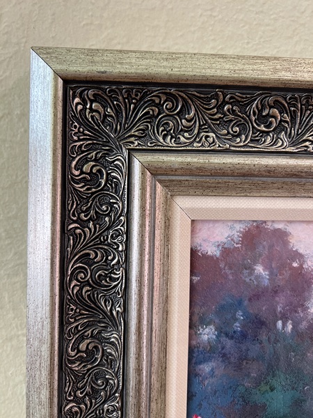 Large elegant framed painting of a garden scene with ornate border. Approx. 34” x 28”…$30 firm