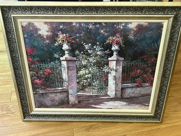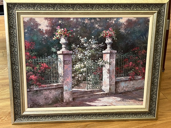 Framed Garden Gate Scene Painting - large