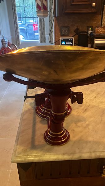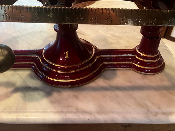 Restored antique balance scale mfg. by Henry Troemner Pat date of 1877. Solid brass plate and bucket