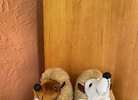 Adorable, vintage, brown and white hedgehog plush toys with pink bows (one bow could use a stitch). These were not used, just sat in a shelf. Approx. 6” x 3 1/2”…$12 total, firm
