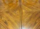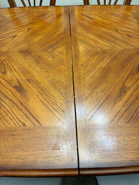 Solid wood, extendable up to 8 seats with a leaf. All in great condition.