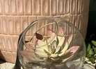 Handmade glass terrarium with a Pottery Barn faux succulent and river stones…$25 firm