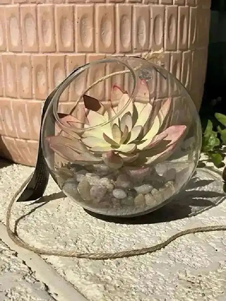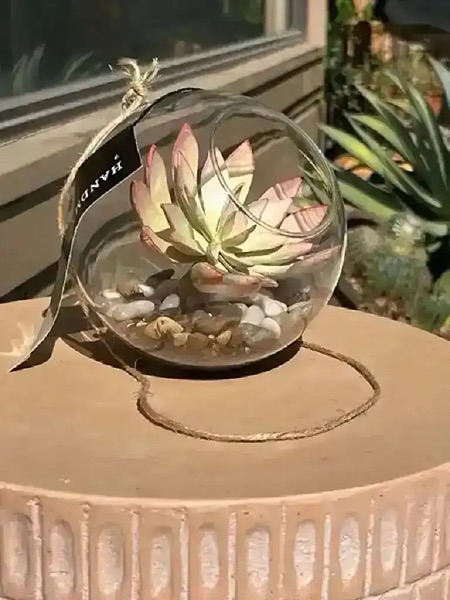 Hanging Glass Terrarium with Succulent - new