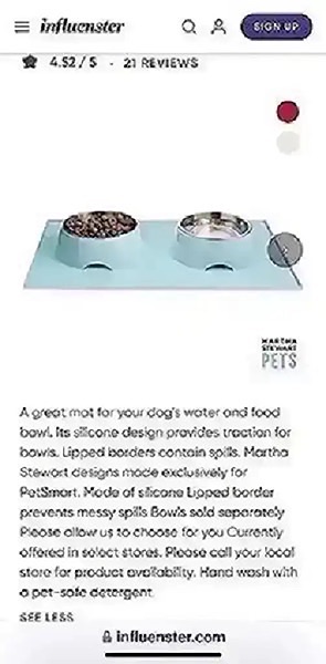 From Martha Stewart’s Pets, used for a short time. The mat's lipped edge keeps spills from seeping onto floors, making cleanup easier…$25 firm