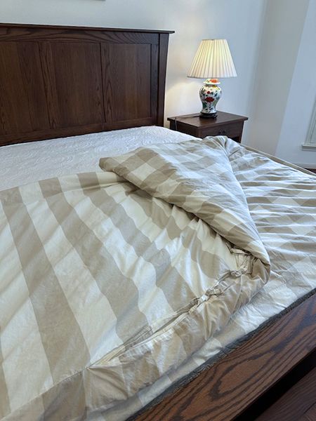 $15 Tan white and duvet cover and insert (checkered pattern on 1 side, striped on the other)