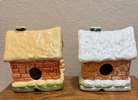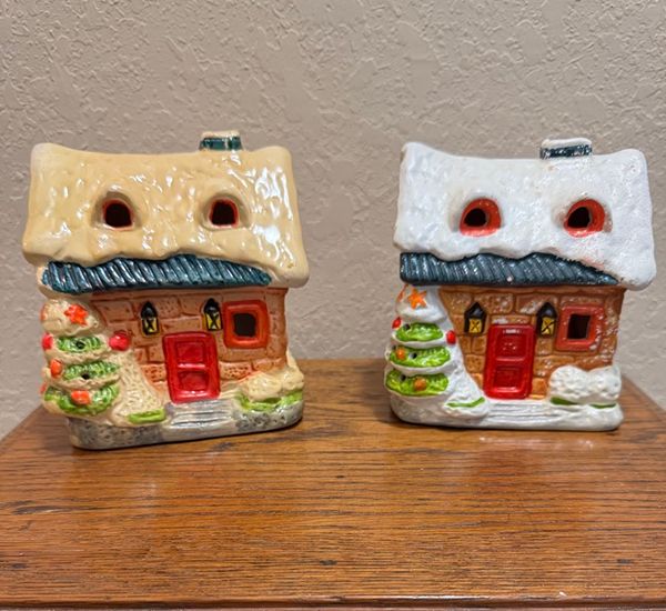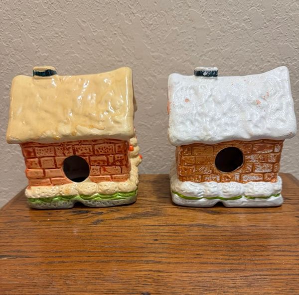 Largest house is 8"H with base of 7" x 6" *** White house is 6"H with base of 5" x 3" *** Two smallest are 5.5"H wtih base of 4.5" x 5"