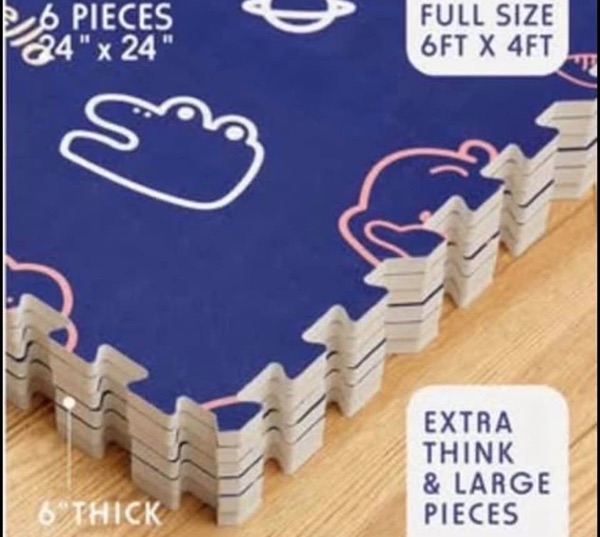 See first two photos, have one of each pattern, $15 each. These are rare and hard to find, also cost $100 each retail because they are thicker foam and have extra thin carpet like covering. Cleaning out storage and priced to sell, each piece is 2 feet by 2 feet and there are 6 pieces per set. Never been out of packaging. Brand new, Woodlands 77381, cash only.