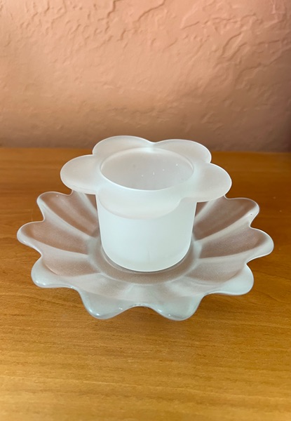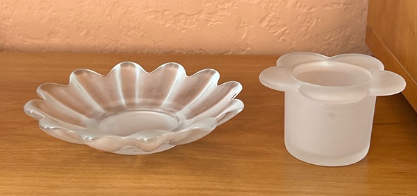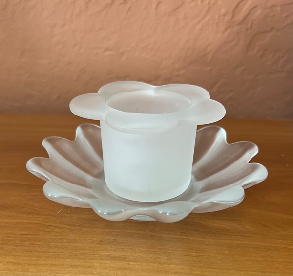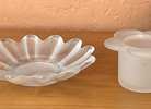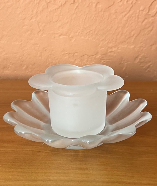 Frosted Glass Lotus Candle Holder & Dish Photos