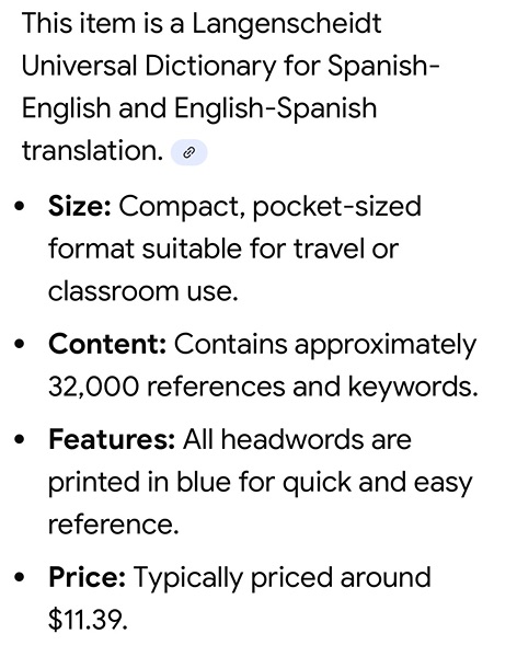 This item is a Langenscheidt Universal Dictionary (pocket size) for Spanish-English and English-Spanish translation...$5 firm
