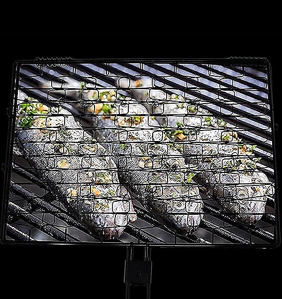 -Oversized basket expands to fit a variety of foods; whole chicken and fish, steaks and hamburgers, multiple bratwurst, hot dogs and corn-on-the-cob, vegetables. Rings hold flexible wires together to keep food in place. Easily turn foods all at once, at the same time. Perfect for campsite fires, charcoal, gas or electric grills.
