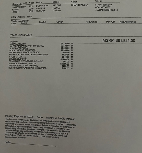 2019 South Bay 500 Series Model 523SB2 Tri-toon With Yamaha Motor Model F200LB Photos