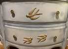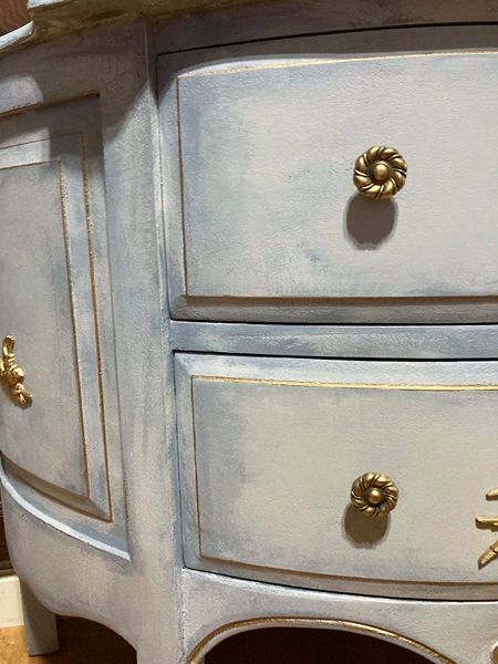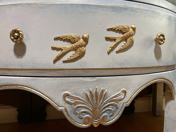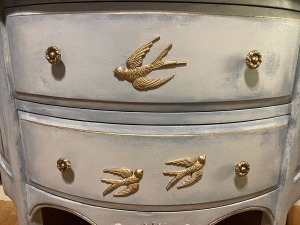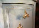 - We cleaned, filled, sanded, primed, added layers of creams and blues for a beautiful cloudy sky look. Then I applied hand poured moulds of birds, gilded and sealed for durability.