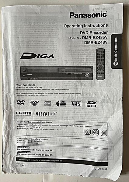 This DMR-EZ48V DVD/VCR combo player/DVD recorder has been tested and is in good working condition. Included is the original remote with batteries, owner’s manual, cables shown and power cord. Please see photos as they will show the condition of the unit, and it is the exact item including accessories shown that you will receive. Original owner from a smoke-free home. Pick up in Alden Bridge. Contact me through this site or text me if interested or have any questions.