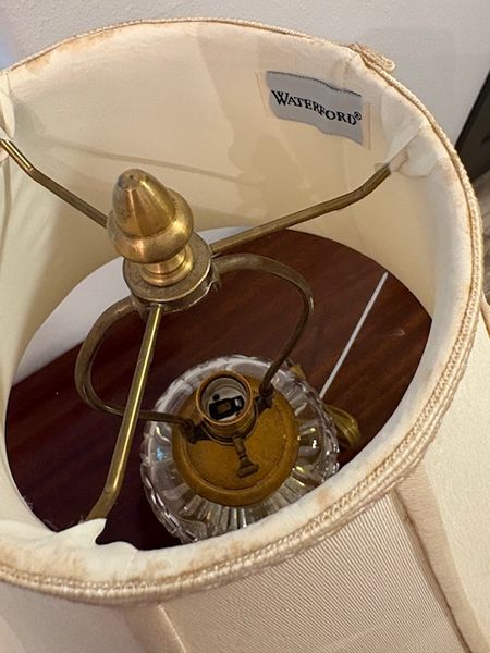 Beautiful Antique Waterford Crystal and Brass Lamp with original Waterford Lampshade.