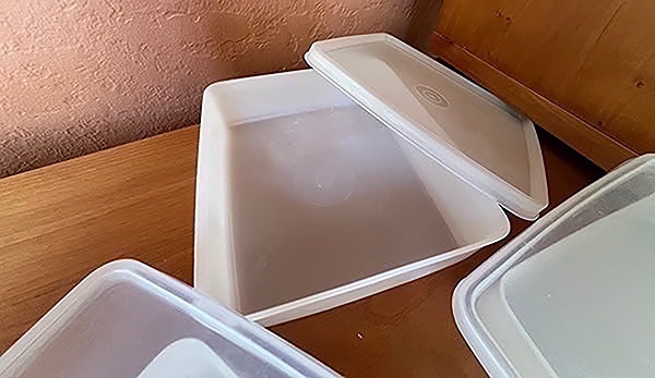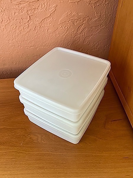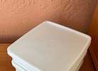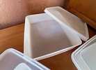 Three Tupperware plastic storage containers. One shows wear but all have great seals and can store anything i.e. craft supplies, beads/buttons, nuts/bolts, coins etc…$7 firm