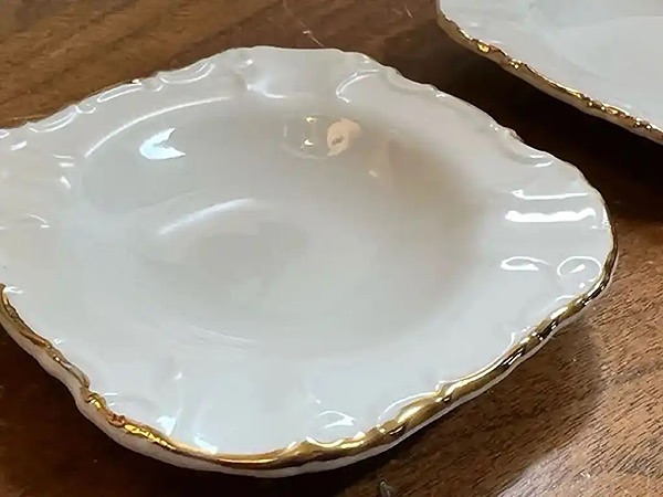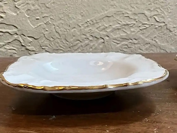 These small and dainty ashtrays were my grandmother’s. There are two available. White porcelain with gold painted rim. No chips or cracks. Measures about 3 3/4” square…$8 each or both for $15