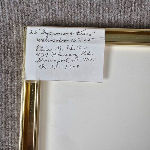 Original watercolor painting titled “Sycamore Trees” by artist Elsie M. Faith (1987) 22x28. Located in The Woodlands 77381. Crossroad kuykendahl road and research forest drive.