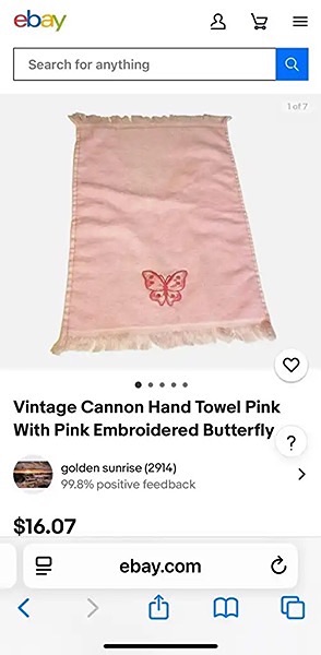 Set of two pink hand towels featuring embroidered butterfly design by Cannon. 100% cotton. Great shape, no stains…$10 firm