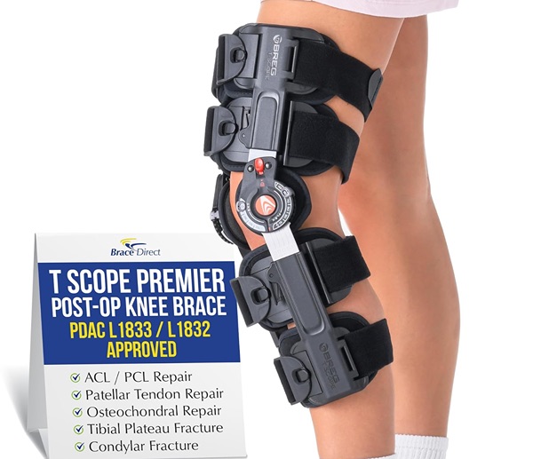 FITS THIGHS UP TO 30.5 INCHES: T Scope Premier adjustable ROM brace extends from 17" to 27" and accommodates thigh circumferences up to 30.5" for standard post-op recovery support.