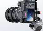 In a sleek and ergonomic design, the Moza AirCross 2, in white, supports up to 7 lb cameras, including wide-body types like the Blackmagic Pocket 4K and those with a built-in grip. It comes with a companion iOS/Android smartphone app that provides many creative features, including an AI calculation function that auto-tunes the gimbal by selecting optimal parameters based on the camera load. The AirCross 2 is designed to hold the camera mounted closer to the tilt motor, allowing for more stability with most cameras, and the camera orientation can be switched between portrait and landscape modes when using the dedicated included bracket. The gimbal also has an angled motor arm in order to allow a clear view of the camera LCD during operation.