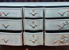- The drawers are sturdy, dove-tailed, glide smoothly in and out on their center wood rails with original polished hardware.