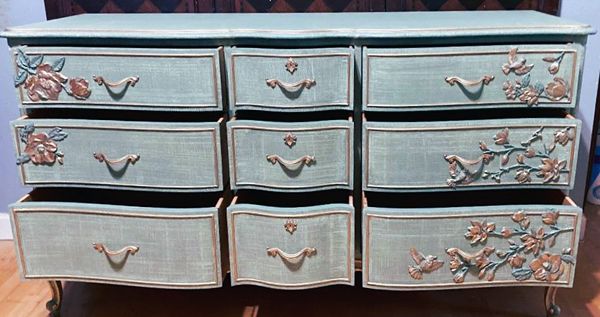 - Elegant vintage Drexel Touraine French country 9 Drawer Dresser ready for its new home.