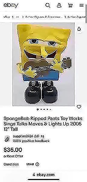 SpongeBob sings the “Ripped Pants” song. Sings, talks, moves and lights up! Rare from 2005!